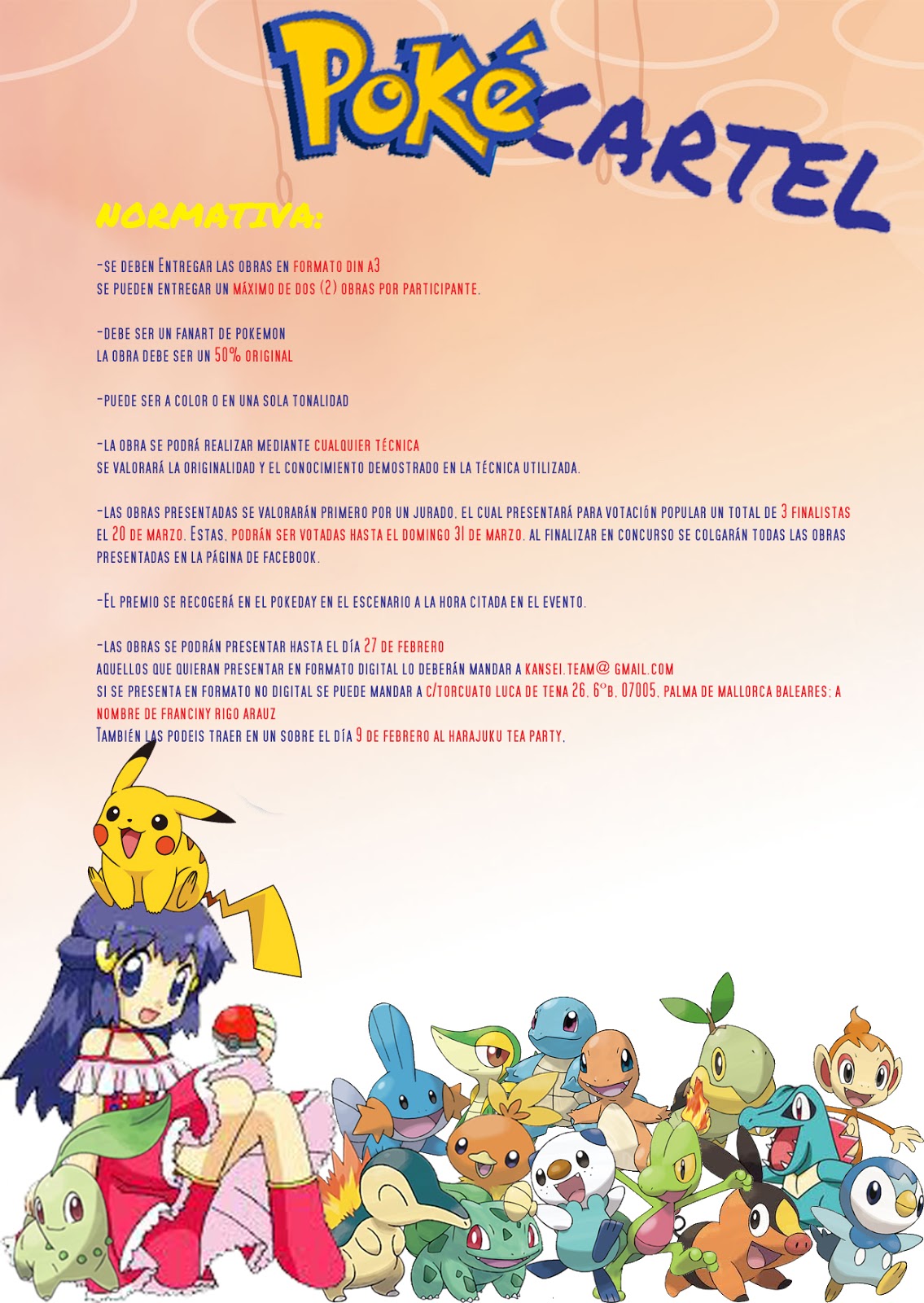 No ponemos restricción a la participación de este concurso, ya que la verdadera intención es encontrar al pokecartel para promocionar el gran evento de este año: El Pokeday.